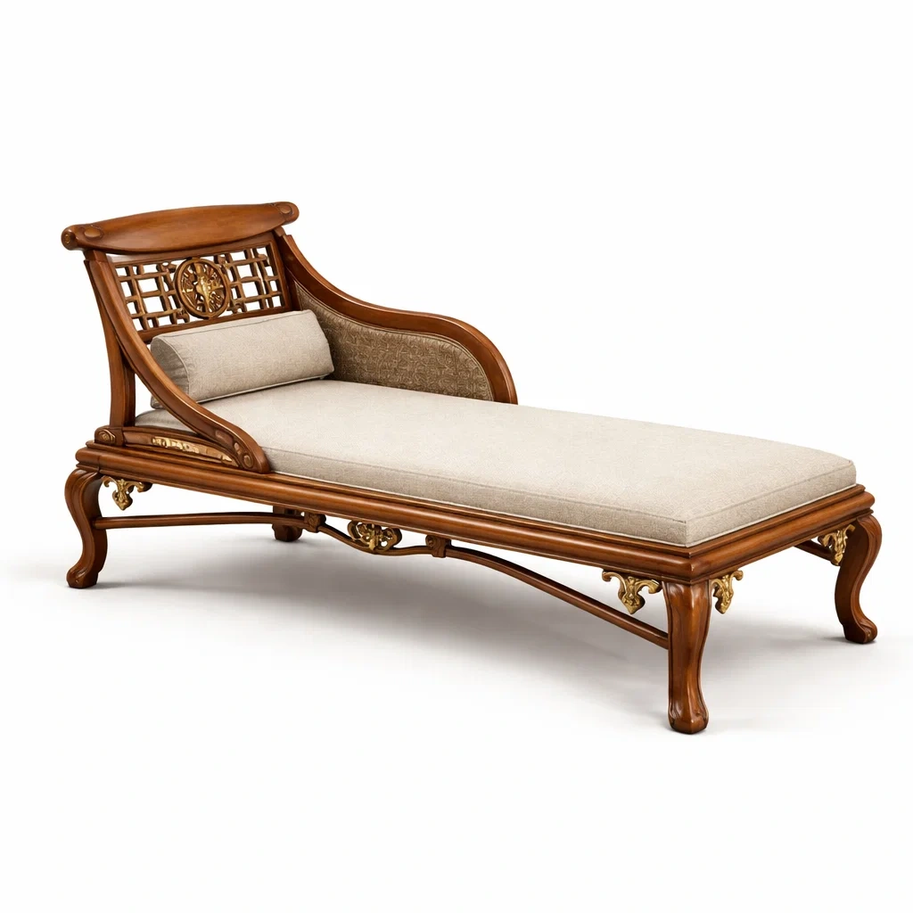 Chaise longue en bois et polyester beige 195x65x75 cm